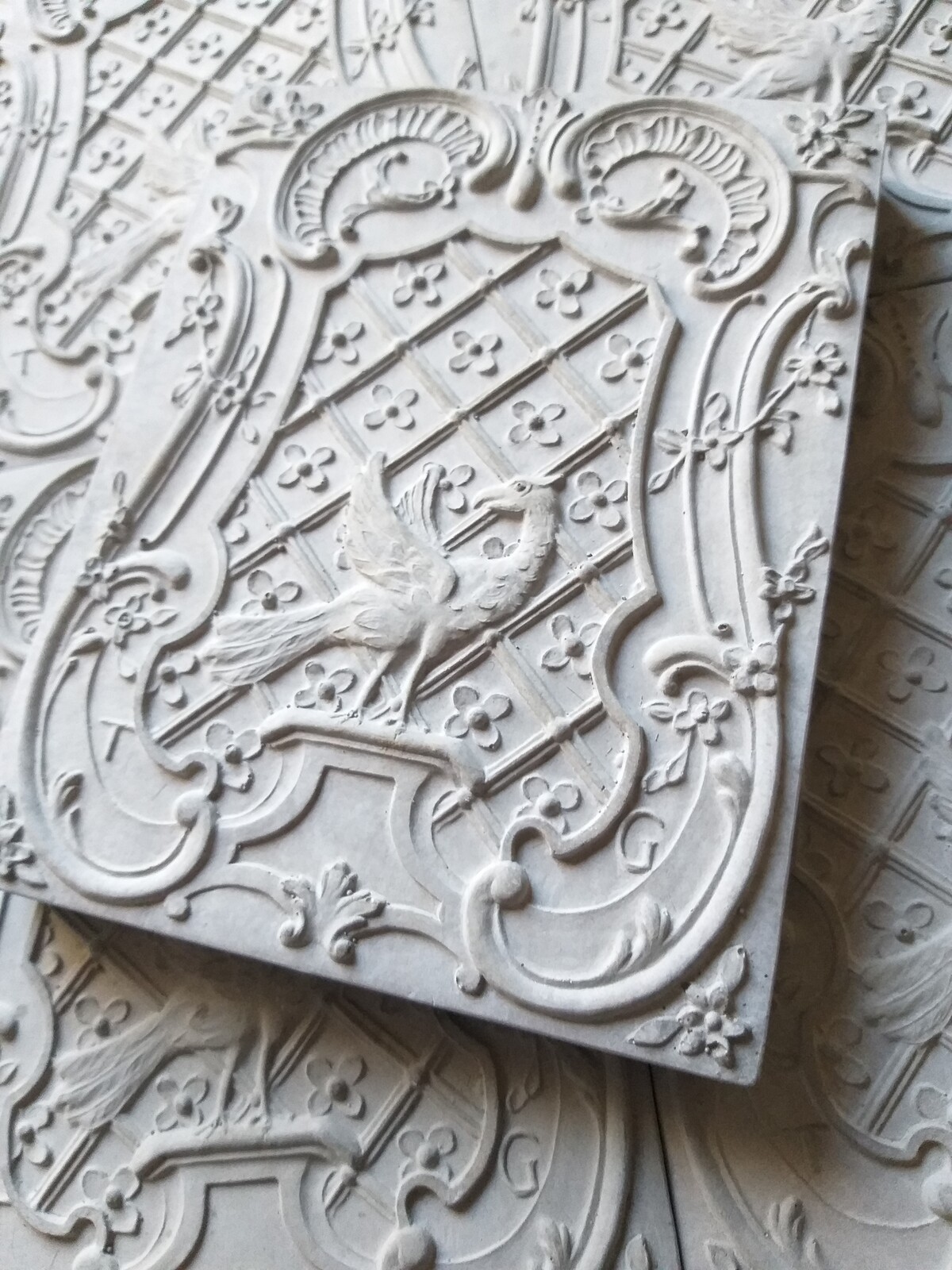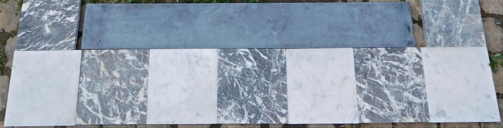 A big (180 cm) large and beautiful Louis XV fireplace, made out of a Belgian marble, Saint Anna. (The quarry is empty since many years.) The sleek lines and the finely carved cartouche in the center of the frieze is enough for making a compelling statement in any interior. This fireplace will be delivered with original marble floortiles, Carrara and Saint Anna. And with Louis XV styl gilded bronze endirons. Also in our stock: Louis XV style foyer-tiles. Worldwide delivery. Delivery in Europe can be done by Antique Fireplaces First: 'In House Delivery'.