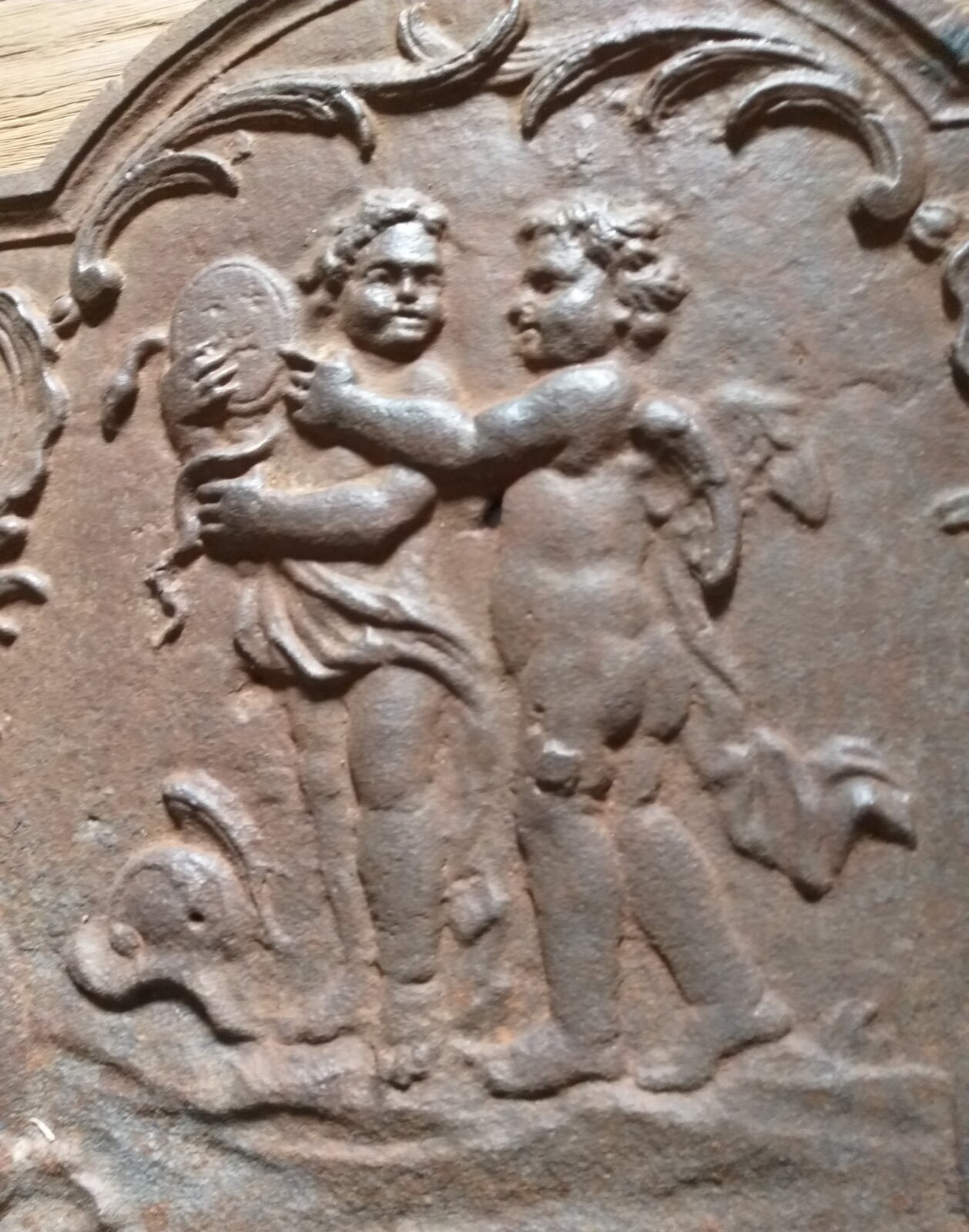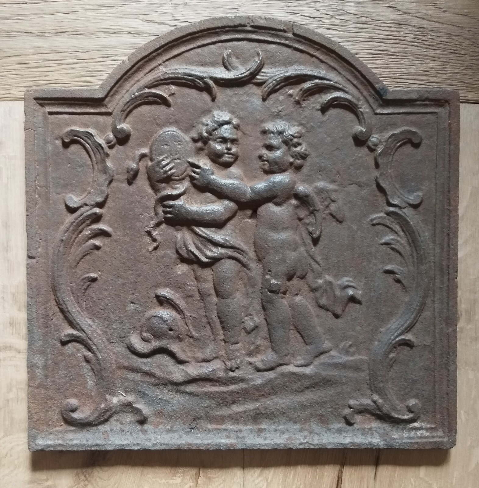 Backfire (or as a backsplash) in cast iron, nicely aged by time and use. Ca.1800-1850. Very good condition. Worldwide shipping.