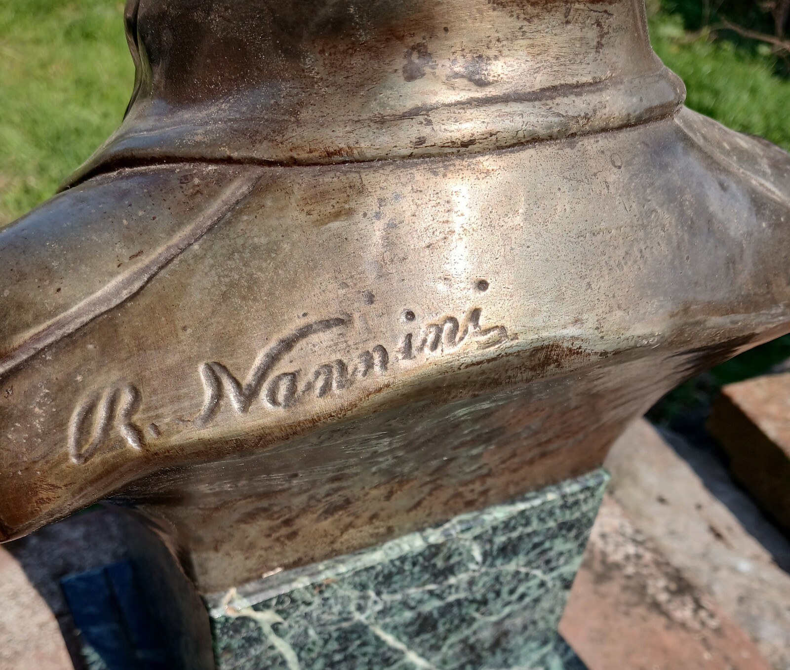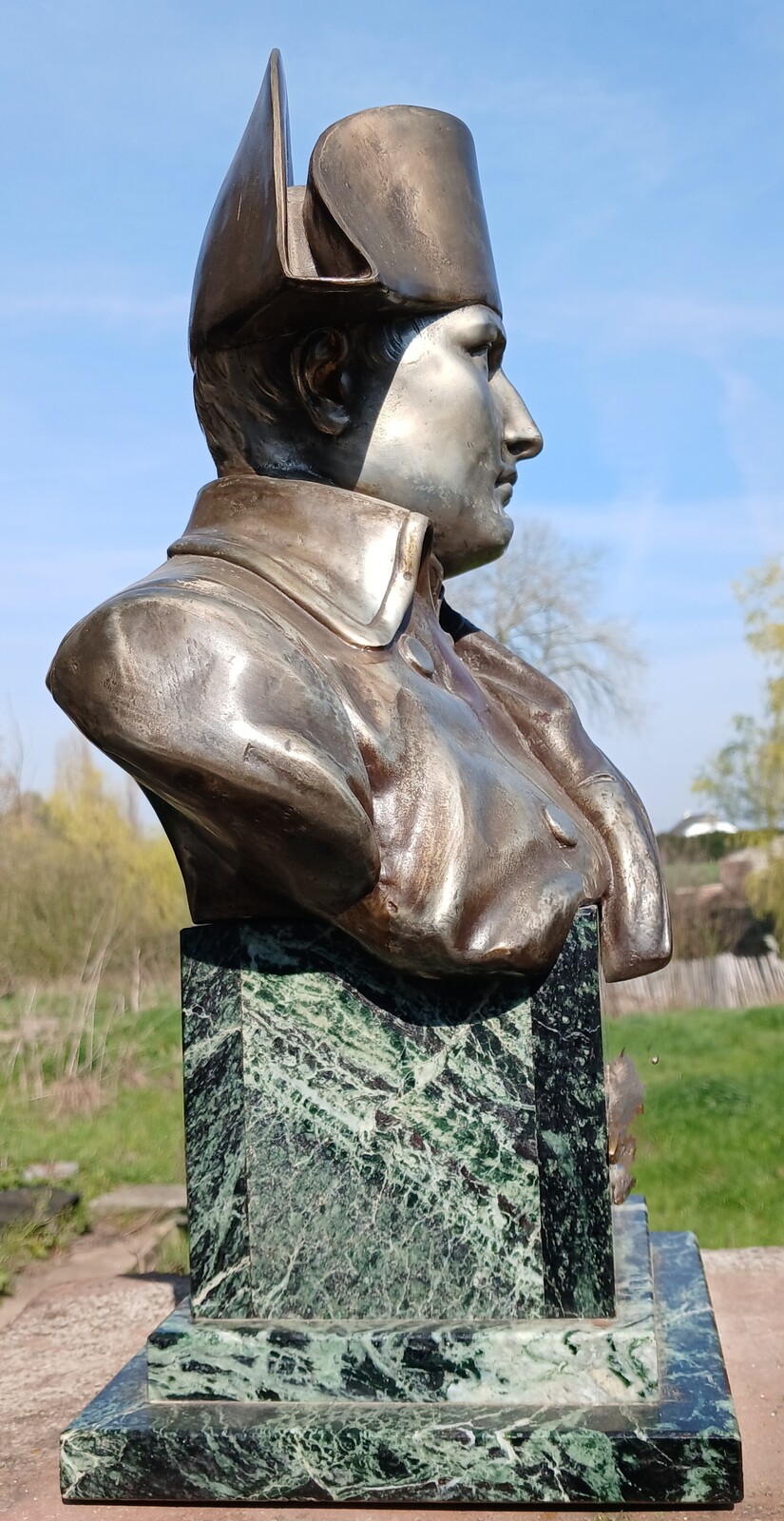 A Napoléon Bonaparte buste in metal-alliage, ca.1875-1900, on a marble base with an eagle mounted to the frontside. Good condition. Worldwide delivery.