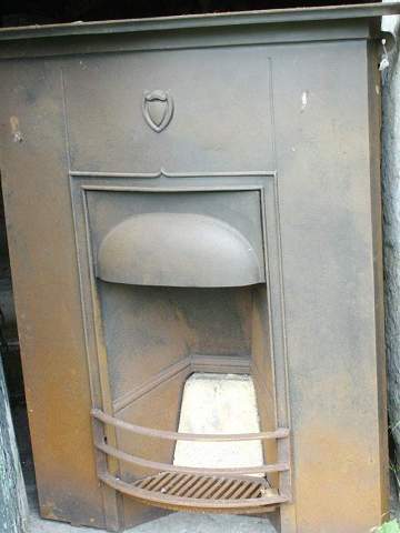 Een van de vele, verschillende, Engelse, gietijzeren schouwen. Periode 1880 tot 1930.