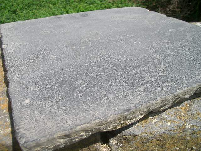 Mooie partij zeer oude natuursteen vloertegels, 32 x 32 cm. Onbehandeld is de kleur grijs.